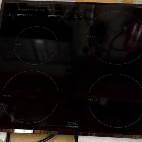 Inbyggnadsugn i rostfritt stål med front i glas och digital display. Fungerar precis som den ska. Finns några få repor som kan ses i vissa vinklar.