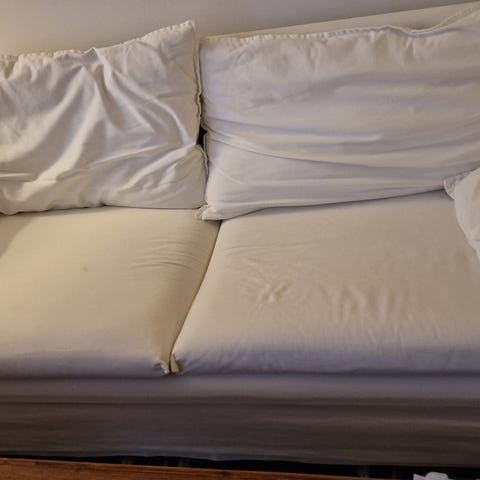 Fåtölj som kan bäddas ut till enkelsäng. Avtagbar och tvättbar klädsel. Manual medföljer.