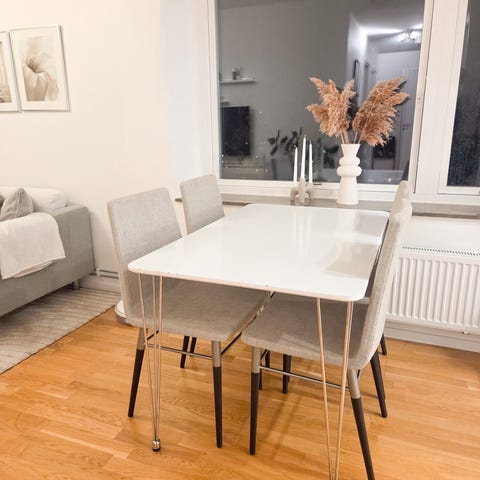 Säljer mitt vita matbord med 6 stycken tillkommande stolar