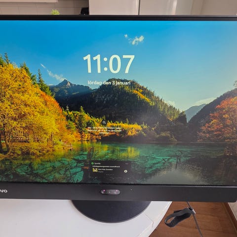 Lenovo Think Vision 27" 4K bildskärm. Bra skick. Anslutningar: USB-C, USB 3.1 (kabel medföljer), HDMI samt Displayport (kabel medföljer). Inbyggd webbkamera (utfällbar).