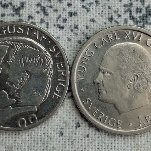 100 kr minnesmynt silver 1988 stort och litet porträtt