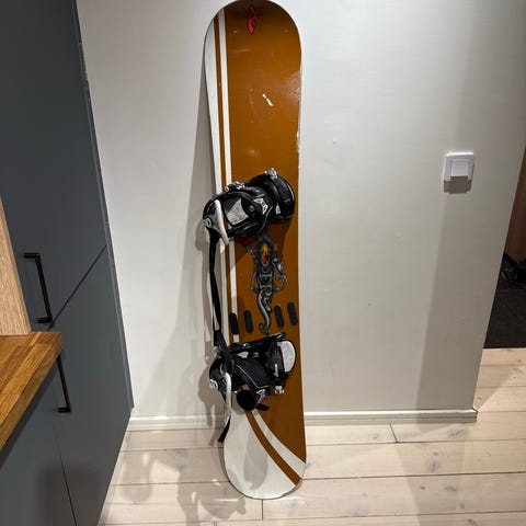 Burton Baron ES 168cm. Bästa snowboarden som fanns att köpa för 15år sedan. Bara brädan kostade drygt 10 000kr. Tejprester på brädan är bara kosmetist för att jag var rädd att den skulle bli snodd i backen.