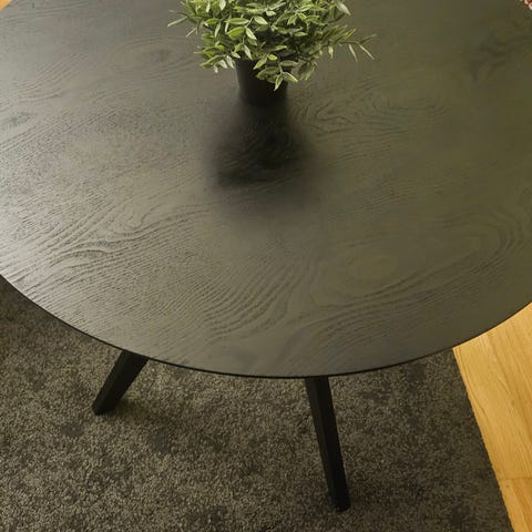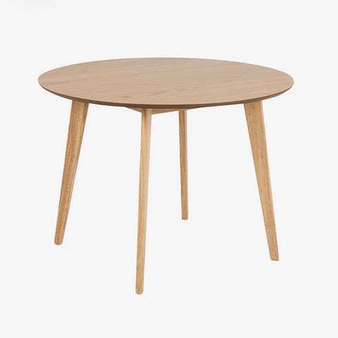 matbord har en rund form,.Tack vare bordsskivan och basen av ek, passar detta bord bra till både mörka och ljusa färger.