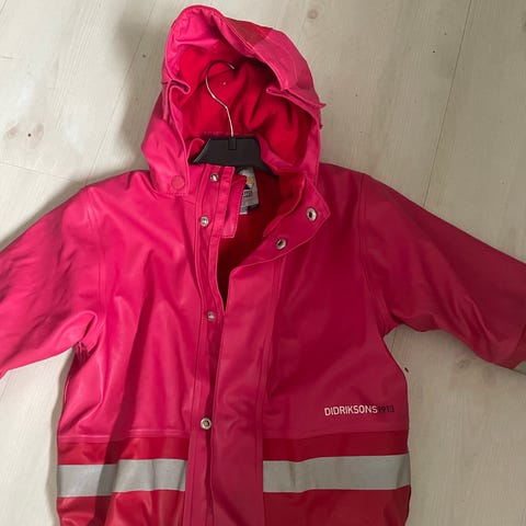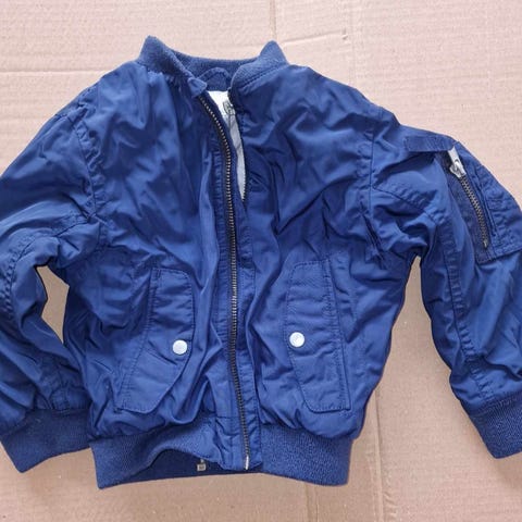 Jacka, parkas mörkblå med rosa insida strlk 92, H&M (använd, namnad, fint skick).