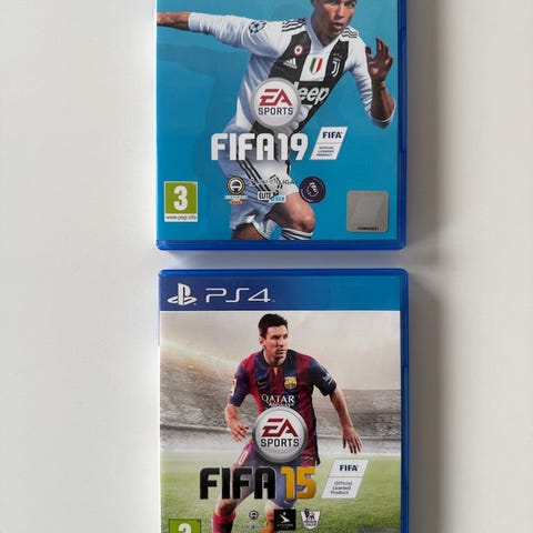 EA Sports FIFA 16, FIFA 17, FIFA 18 och FIFA 23 spel för Playstation 4. Fotbollsspel med PEGI 3-klassificering, i blå PS4-fodral. Passar Playstation 4-konsoler och kan spelas i enspelarläge och olika flerspelarlägen beroende på spelversion.