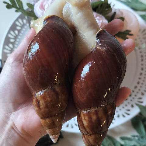 Jag har 4 st stora jättesnäckor som är födda och uppfödda hos mig! Jag vill gärna sälja några av dem, för detta är lite för många för mig (jag har även några av mindre storlek). De är lätta att ta hand om och mycket roliga för speciellt barn att leka med. Äter grönsaker och växer sig snabbt stora! Jag kan mötas upp i Skåne! Jag vill gärna sälja dem i par då de inte gillar att vara ensamma.