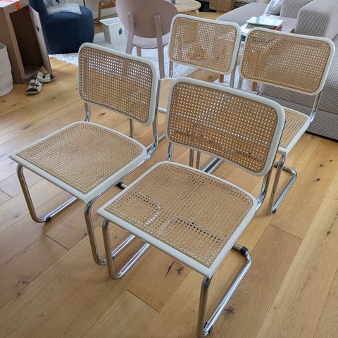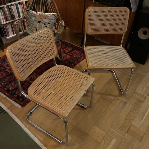 Säljer 6 st fina rottingstolar i Bauhaus-inspirerad design, tillverkade i Italien. Köpta second hand och går inte längre att köpa nya.