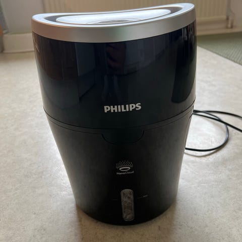 Philips luftfuktare i vit färg fyller hemmet med ren luft. Cylindrisk modell med luftintag runt om nederdelen och utblås upptill. Lämnar inga blöta fläckar. Passar för inomhusbruk för att filtrera och cirkulera luft i rummet. Diskret design som kan placeras på golv eller bord. Driftstid 10,5 timmar. Maximal rumsstorlek 31 kvadratmeter. Höjd: 32,4 cm, bredd: 18,4 cm. Sladdlängd: 1,2 m.
