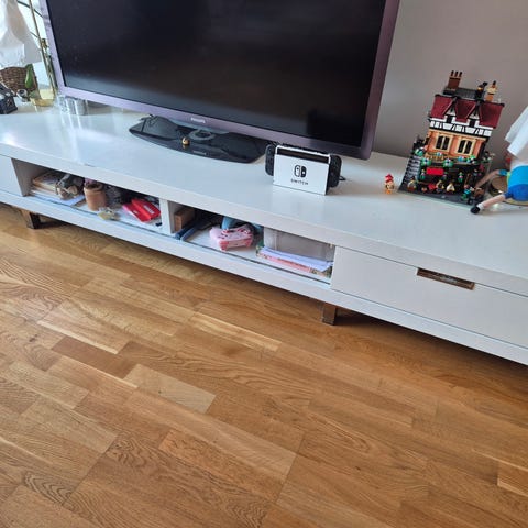 Tv bänk i ek, bortskänkes. Hämtas i Älvängen, först till kvarn