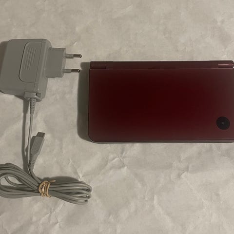 Nintendo DSi handhållen konsol i blå färg. Konsolen har dubbla skärmar, varav den nedre är pekskärm. På bilderna syns medföljande nätadapter/laddare samt svart pekpenna. Passar för spel avsedda för Nintendo DSi och kompatibla Nintendo DS-spel. Lämplig som bärbar spelkonsol för hemmabruk och resor.