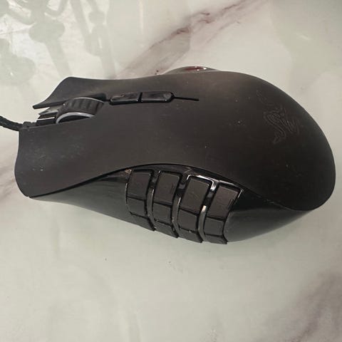 Razer Naga X gamingmus i svart. Ergonomisk trådbunden MMO-mus med sidoknappar för snabb åtkomst till funktioner i spel. Fungerar perfekt och är i fint skick.