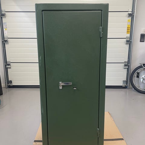 Säljes på grund av flytt. Säljer kassaskåp/vapenskåp som har använts till att förvara gevär. Det finns en nyckel till.