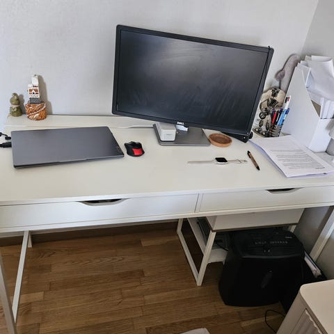 Great condition IKEA Alex desk with two built-in drawers, large worktop, and cable management.