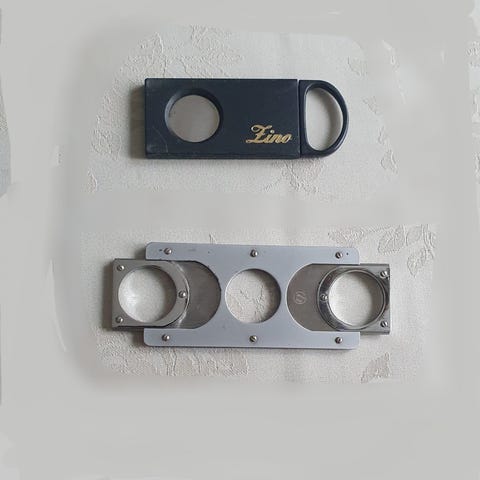 Den har både en cigarrskärande giljotin och ett cigarrstans.
