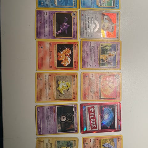 Pokémon samlarkort med holo- och full art-motiv. Blandade motiv och figurer, flera kort med glansig yta. Standardstorlek för Pokémon-kort, baksida med klassisk blå Pokémon-design. Passar för samling eller spel i Pokémon Trading Card Game. Exakt uppsättning kort framgår av bilderna.