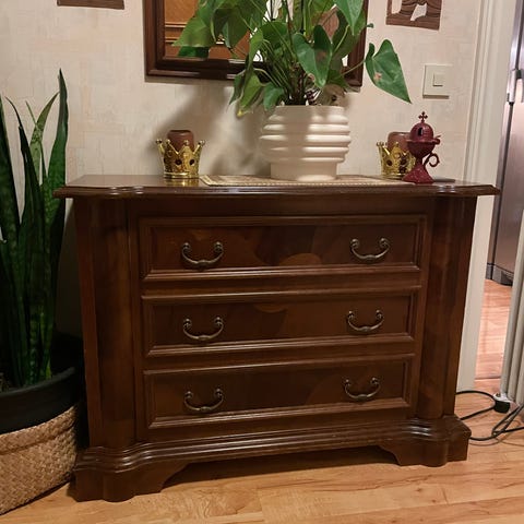 Liten mörkbrun byrå, perfekt som sängbyrå. Säljer pga lite mörk färg för nuvarande sovrum :)
