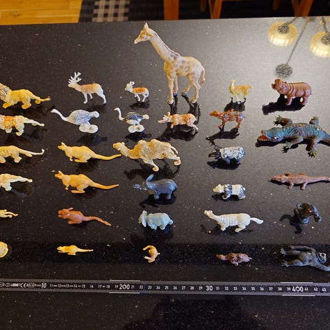 En uppsättning av cirkusfigurer av olika slag i plast från 1970-talet.