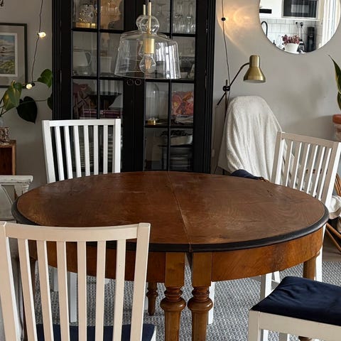 Axet Gustaviansk matgrupp . Bord och 8 st antika stolar. Stadiga och stabila.