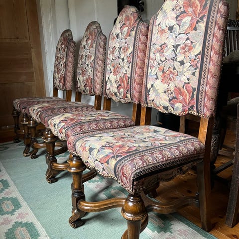 8 st stolar med fin klädsel. Stadiga o stabila.