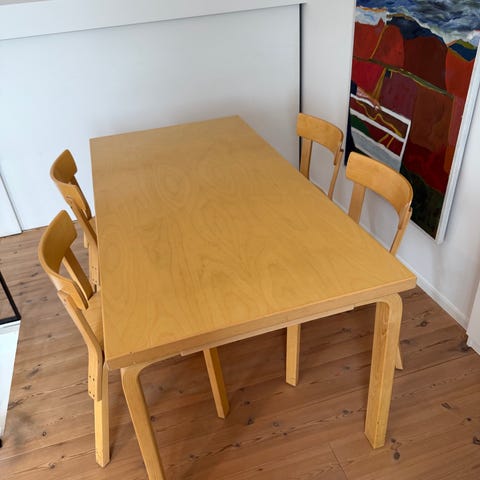 Det här är inte en kopia – det är äkta Artek, formgivet av Alvar Aalto. Nypris idag för samma set: över 35 000 kr.