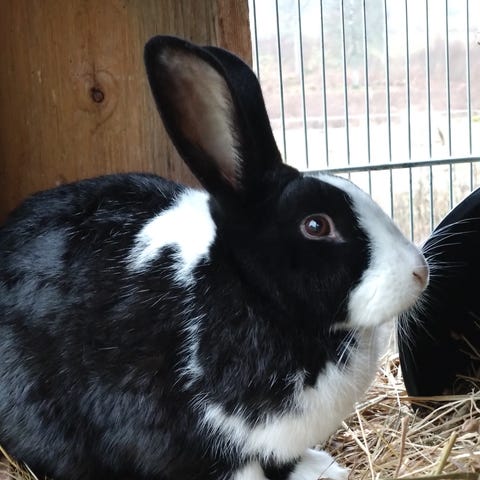 Jag har kaniner, höns och hästar på min gård och här finns plats för ett par kaniner till, om någon söker nytt hem.