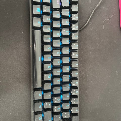 Razer Huntsman Mini tangentbord i 60 %-layout. Kompakt mekaniskt gamingtangentbord med optiska brytare och RGB-belysning. Ansluts via avtagbar USB-kabel (USB-A till USB-C). Svensk/nordisk layout enligt märkning på förpackning. Passar för stationära och bärbara datorer där man vill spara plats på skrivbordet och ändå ha full funktion för spel och skrivarbete. Original box tillkommer samt sladd