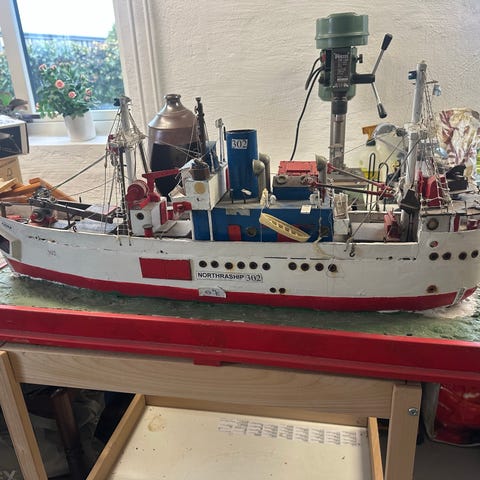 Står på en träställning. Båten är 53cm lång.