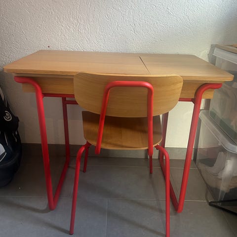 Ikea barnbord och två bänkar. Ikea släppte denna möbel i samarbete med designern hay.