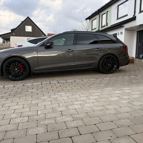 Säljer 4 st svarta aluminiumfälgar med däck som suttit på Audi A5 2018.