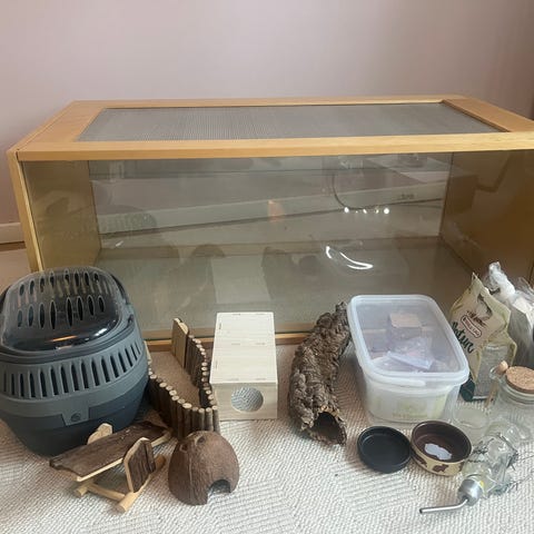 OBS det som ej syns i bild som även följer med är stor oöppnad påse med bad/toalett sand för smådjur samt en oöppnad påse mat av samma som finns på bild. Samt en oöppnad BAL med spån.