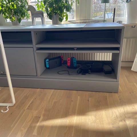Super fin tv grupp som går att lysa upp med fina blå lampor. Tanken är egentligen att skåpen ska hänga på väggen men vi kom aldrig så långt men det har varit super fint ändå. Själva tv-bänken har sina skavanker men kan målas om av köpare så blir den som ny igen. Skåpen har just nu barnlås på som vi självklart kan plocka bort om så önskas, vid frågor så skriv gärna 😄🌸