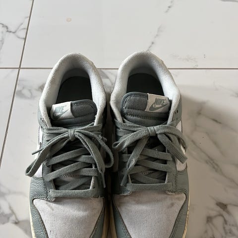 Nike dunk low sneakers i storlek 38.5. Låga sneakers i grått och vitt med snörning. Med lite kärlek och omtanke kan skorna se som nya ut!