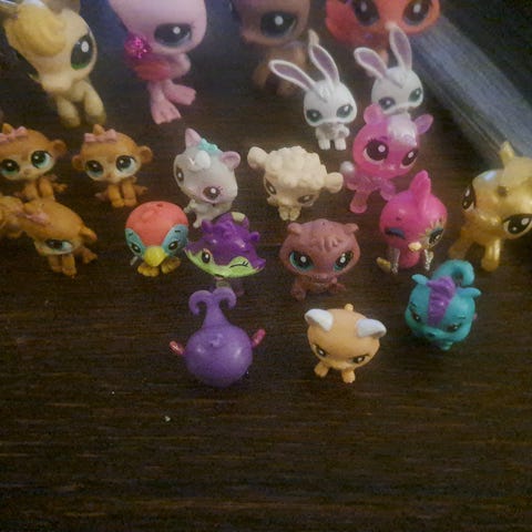 Littlest Pet Shop samlarfigurer små plastdjur i flerfärgad plast. Setet består av flera olika djurfigurer i miniatyrstorlek, med stora ögon och varierande färger och detaljer. Figurerna kan användas som leksaker, samlarobjekt eller dekoration. Passar för barn som leker med småfigurer eller för den som samlar på Littlest Pet Shop.