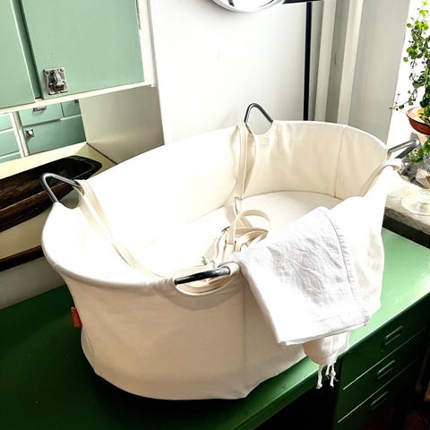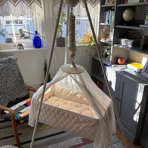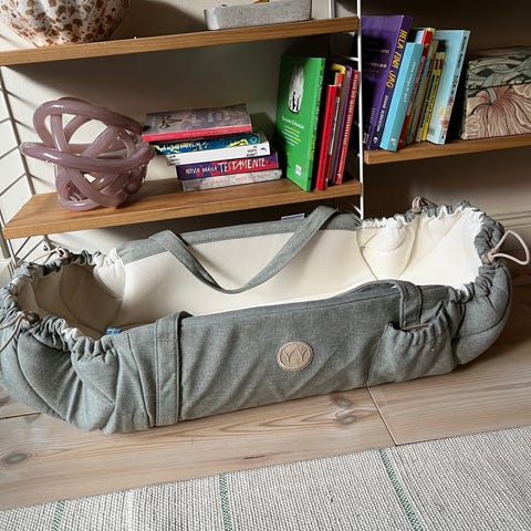 Praktisk hängvagga i fint skick, sparsamt använd. Madrassen ingår.