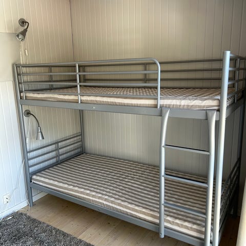 Pent brukt våningsseng med nesten nye madrasser. Kan slås ut til dobbelseng nede.