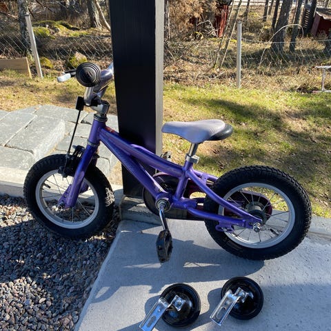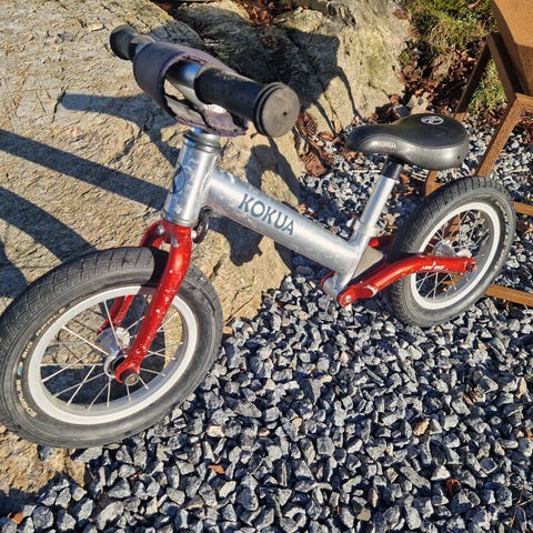 Carrera barncykel med 12" hjul i röd färg. Cykeln har låg ram som underlättar på- och avstigning för mindre barn. Utrustad med pedaler, kedjeskydd och stänkskärmar fram och bak. Passar som första trampcykel för barn som växer ur springcykelstorlek, vanligtvis i förskoleåldern. Sadel och styre är justerbara i höjd för att kunna anpassas efter barnets längd.