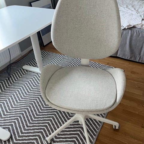Skrivbordsstol Långfjäll med armstöd, klädsel Gunnared beige, från Ikea. Mycket gott skick, inga fläckar. 900 kr (nypris 2.595 kr).