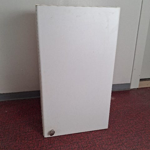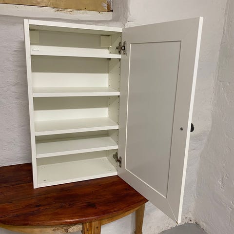 Två vita helt nya stilrena små väggskåp. Två hyllor inuti.