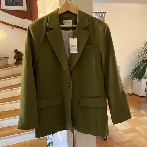 Mango kavaj för dam i storlek S. Kavajen är brun och tillverkad i polyester. Modellen har dubbelknäppning framtill, slag på kragen samt fickor med klaff. Passar som vardags- eller kontorsplagg och kan kombineras med olika underdelar för en mer formell eller avslappnad stil.
