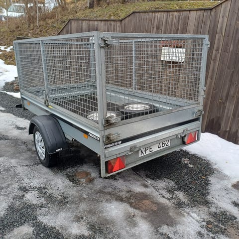 Fogelsta släpvagn med gallergrindar