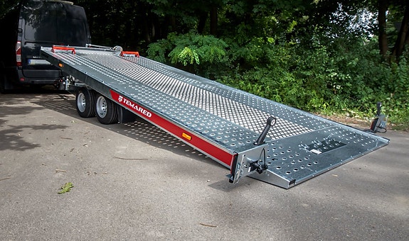 Kraftigt förstärkt flakkälke för godstransporter.