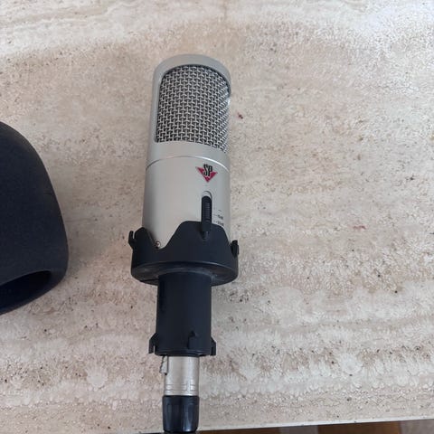 Røde NT1 kondensatormikrofon i silverfärg. Mikrofonen har stormembranskapsel och XLR-anslutning. Lämplig för inspelning av sång, tal och instrument i studio- eller hemmiljö. Kräver fantommatning via ljudkort eller mixer med XLR-ingång.