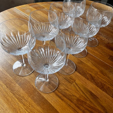 12 st Le Gocce vinglas med blå fot i glas. Klara kupor med blå fot och blått ben. Passar för servering av vin eller andra drycker vid bordservering och dukning. Italiensk design.