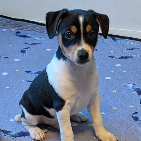 Han är nu ca 8 månader gammal – en unghund med framtiden för sig! Han är uppvuxen i en stor familj med fyra barn och är väldigt social och van vid liv och rörelse. Hemma finns även katter; han är van vid dem, även om katterna inte alltid delar hans entusiasm för lek.