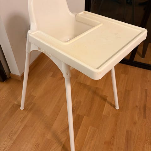 Säljer en barnstol från Ikea, med tillbehör från "Knatteplock" i form av ett fotstöd, för att underlätta för barnet att sitta upp bättre.