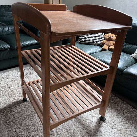 Stokke skötbord trä med förvaringshylla