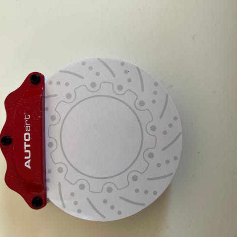 Autoart nyckelring utformad som en ventilerad bromsskiva med bromsok. Tillverkad i metall med detaljerad design. Levereras i originalförpackning. Passar som accessoar till bilnycklar eller som samlarobjekt för bilintresserade. Finns flera.