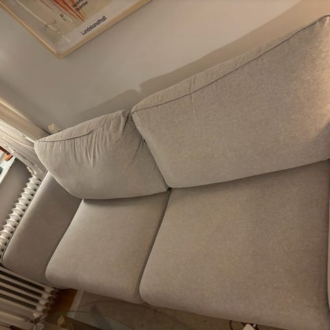 Användes i tre år, har fläckar som ej går bort men kan tas bort om man försöker annars funkar jättebra, man kan ha överkast om man vill också som på bilden . Passar bra till en student lägenhet