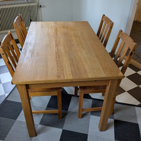 Ekbord med 6 stolar