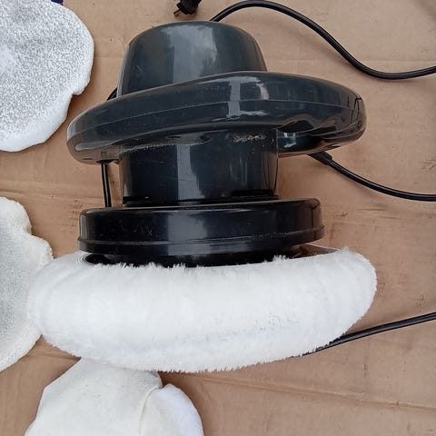 Waxer polermaskin för polering av ytor. Maskinen har rund polerplatta med utbytbara polerdukar enligt bilden på förpackningen. Passar för exempelvis polering av lackerade ytor och andra släta material. CE- och TÜV GS-märkning enligt information på kartongen. Aldrig använd.